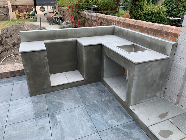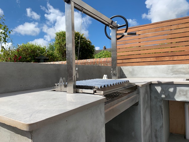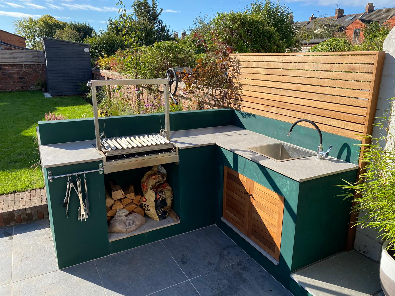 One element which was a must was the Argentinian Grill. This was incorporated within a custom built structure which provided an integrated facility for food preparation and an outside sink.